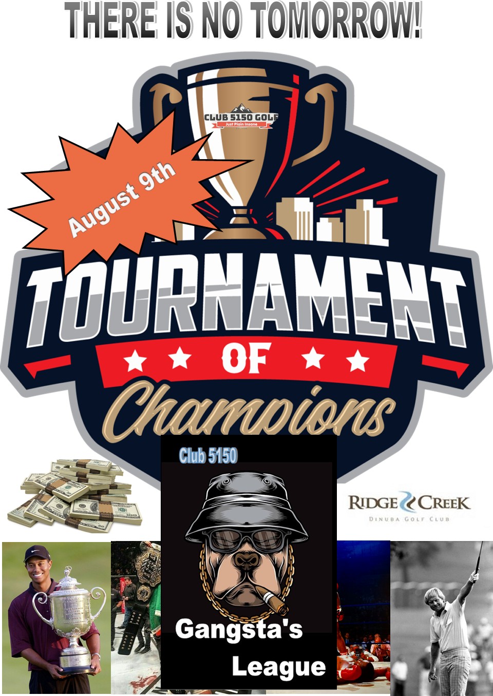 Gangsta League Updates Single Man Play Using USGA Handicap Saturday – August 9th, 2025 Riverside Golf Club Points Champion Wins $40 Tournament Winner (Champions Group) Wins $150 + 2025 League Trophy 2nd Place (Champions Group) Wins $100 3rd Place (Champions Group) Wins $50 4th Place (Champions Group) Wins $25 PRIZE WINNINGS FOR ALL GOLFERS IN TOURNAMENT 50% OF BUY IN GOES TO LOWEST COMBINED PAR 3 SCORES 50% OF BUY IN GOES TO LOWEST SCORE (HANDICAP ADJUSTED) First Tee Time TBA CHAMPIONSHIP FOURSOME Steve Rocha / Nate Self / Des Villagran / Mark Lynch Group 2 ALL CLUB 5150 MEMBERS ARE INVITED TO PLAY IN THIS EVENT Click here to register for this tournament $20 Member Buy-In Green Fees $66 (includes cart)