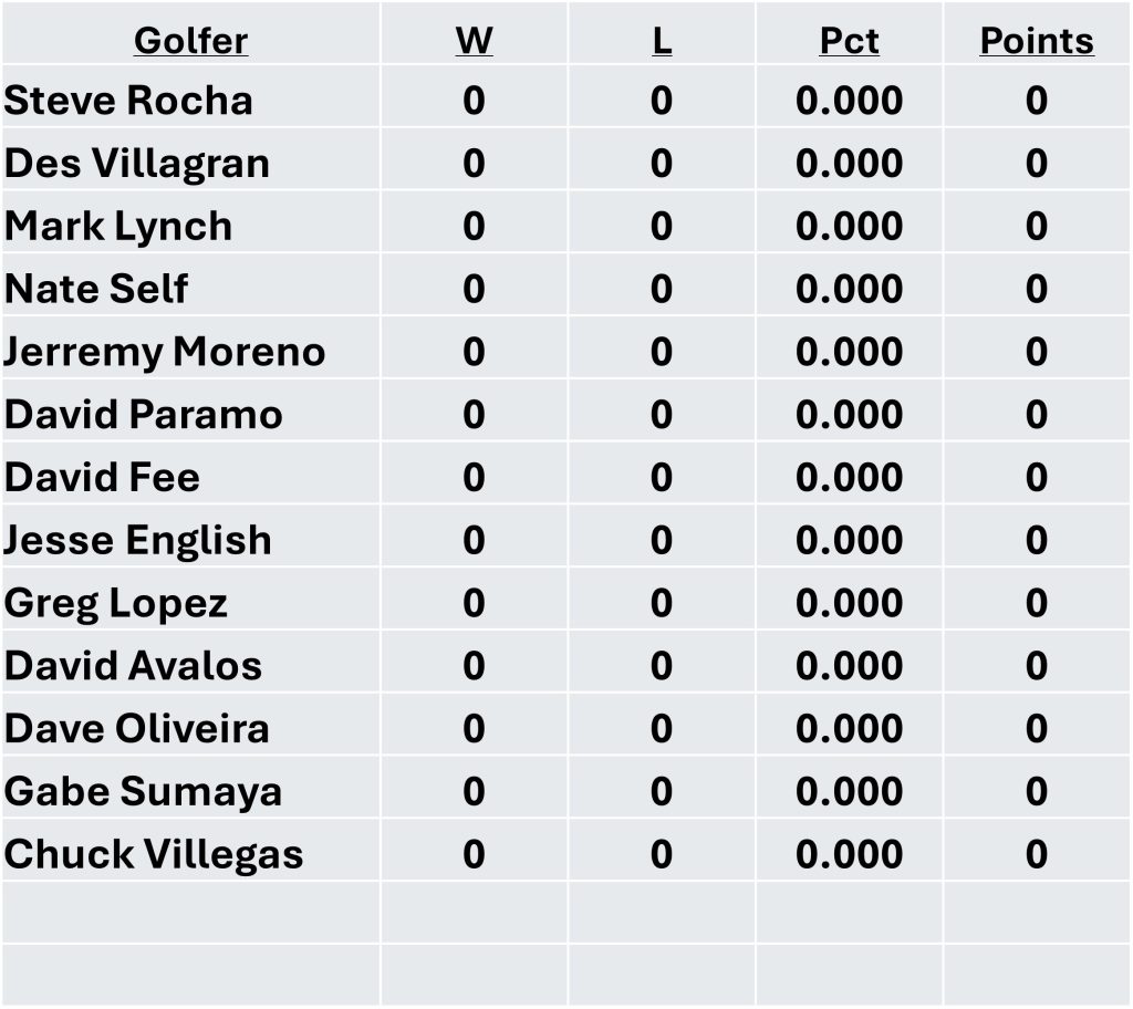 Championship Tournament Qualifying Points Standings