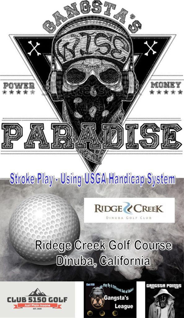 The Gangsta’s Paradise tournament is one any true Gangsta would love. Played at the ever-improving Tulare Golf Course in Tulare, California. This course offers the best of amenities to satisfy any mob boss or crew chief. So bring yo’ bling and yo’ pinky ring and see if you can be the Don Corleone of the 5150 crime family.